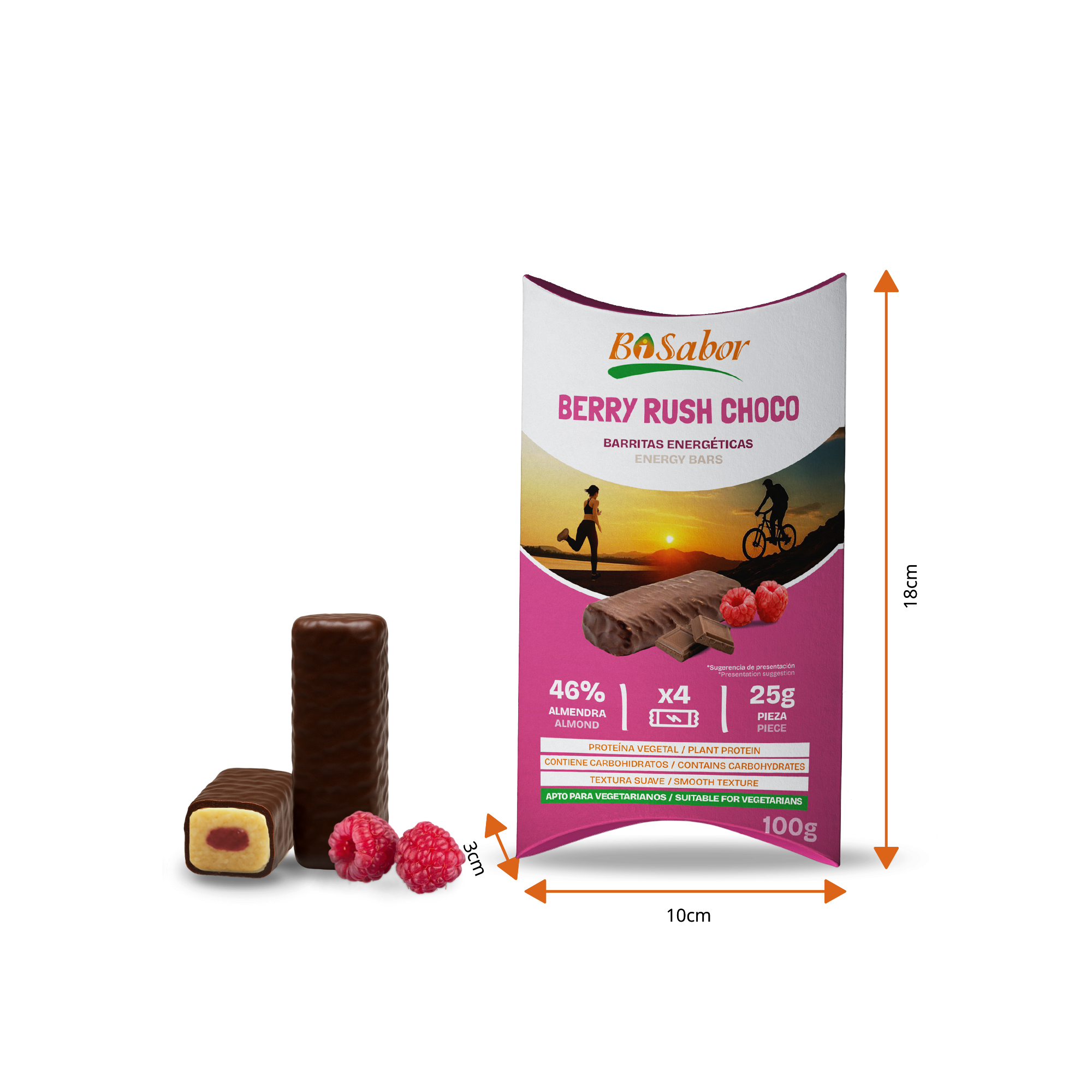Barrita energética Berry Rush Choco – Relleno de Frambuesa 4 x 25g