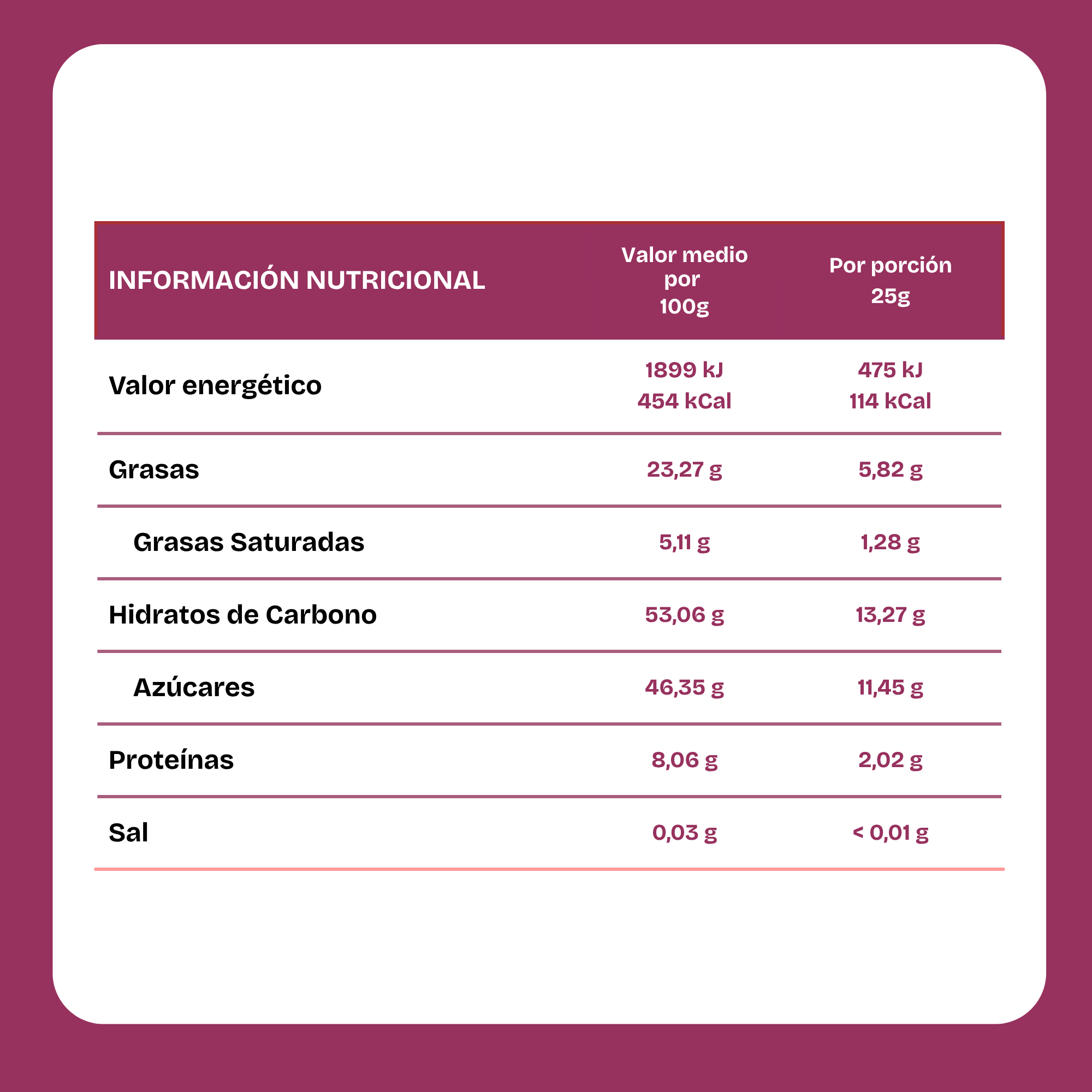 Nutriente Por 100g Por 25g